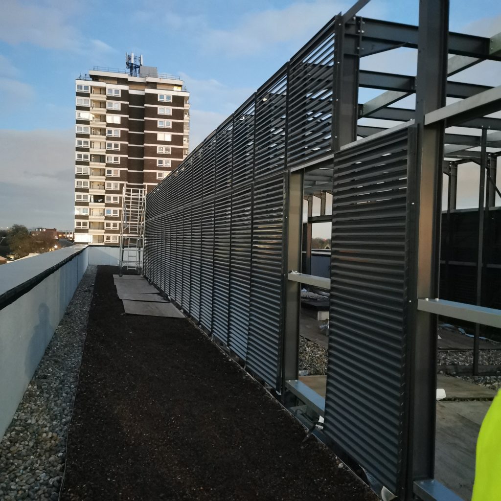 Louvre panel to Plant room – Commercial building Plaistow Hub